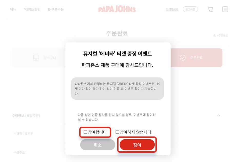 한국파파존스(주)는 이용자의 자발적인 동의로, 구체적인 정보를 기입할 때만 개인정보를 수집하고 있습니다.